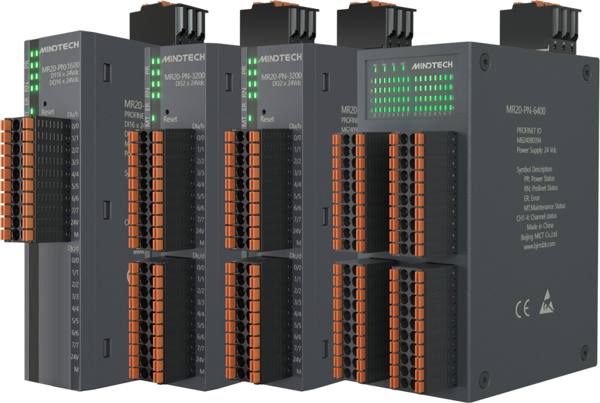 MR20一体式IO由通讯模块和I/O模块组合而成,安全性能高,全方位隔离;支持PNP、NPN输入输出;信号密度高,开关量最多支持64点输入输出。