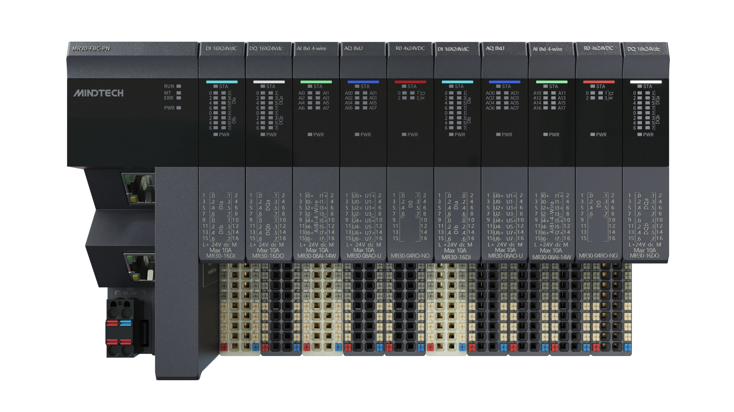 分布式IO是一种脱离传统集中式 IO 柜,将输入 / 输出模块分散部署在工业现场设备附近,通过工业总线(如 Profinet、EtherNet/IP、Modbus TCP 等)与 PLC、MES 等控制系统实现数据交互的工业控制设备。其核心架构由 “主站 + 分布式从站” 组成:主站负责与上位控制系统通信,从站就近接入现场传感器、执行器、温控器等设备的信号,实现分散采集、集中管控的功能。
