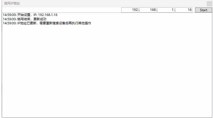 打开网关工具集软件,选择对应的以太网后点击开始,再点击右上角的搜索,待搜索到IO模块后,双击该模块即可弹出设置对话框。点击设置IP,在弹出的对话框中设置需要的IP后点击Start,IP设置成功后会有提示信息对话框,可以做为判断是否设置成功的依据,以上所有设置的截图如下所示。