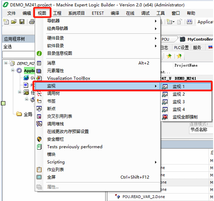 点击菜单栏中的视图→监视→监视1,将触发变量及需要监控的变量添加进监控表,如下图所示。