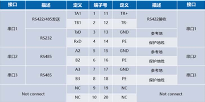 协议转换器包含3路串口,第一路串口支持RS232/RS485/RS422,可根据实际需求任选一项;第2路、第3路串口均为RS485接口,可根据实际需求进行使用。