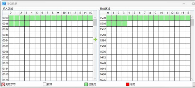 冲突检测中以字节显示,此示例我们设置读10个字,写10个字,如下图所示,为连续区域,如果自行分配,过程映像区可以不连续,可根据实际需求进行设置。