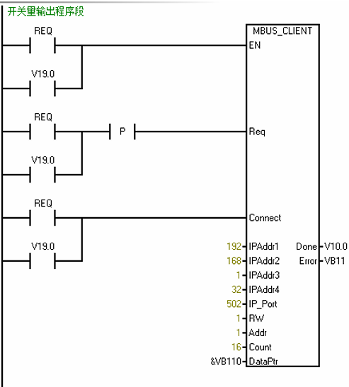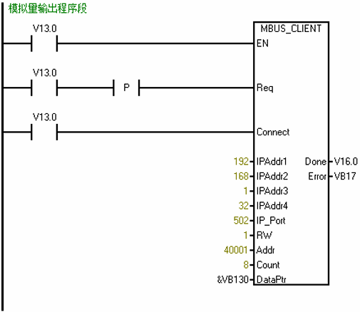 因访问服务器的IP地址和端口号均一致,同一时刻仅允许执行一条指令,因此需要编写轮循程序,此例使用Done为作为上一条件的复位及下一条件的执